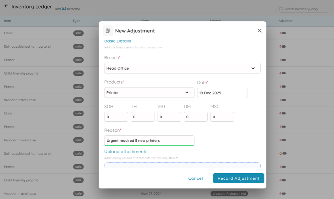 You can record positive or negative adjustments with proper references, ensuring that every stock change is traceable and auditable. This feature helps businesses maintain accurate stock balances while reducing dependency on manual spreadsheets or error-prone processes.