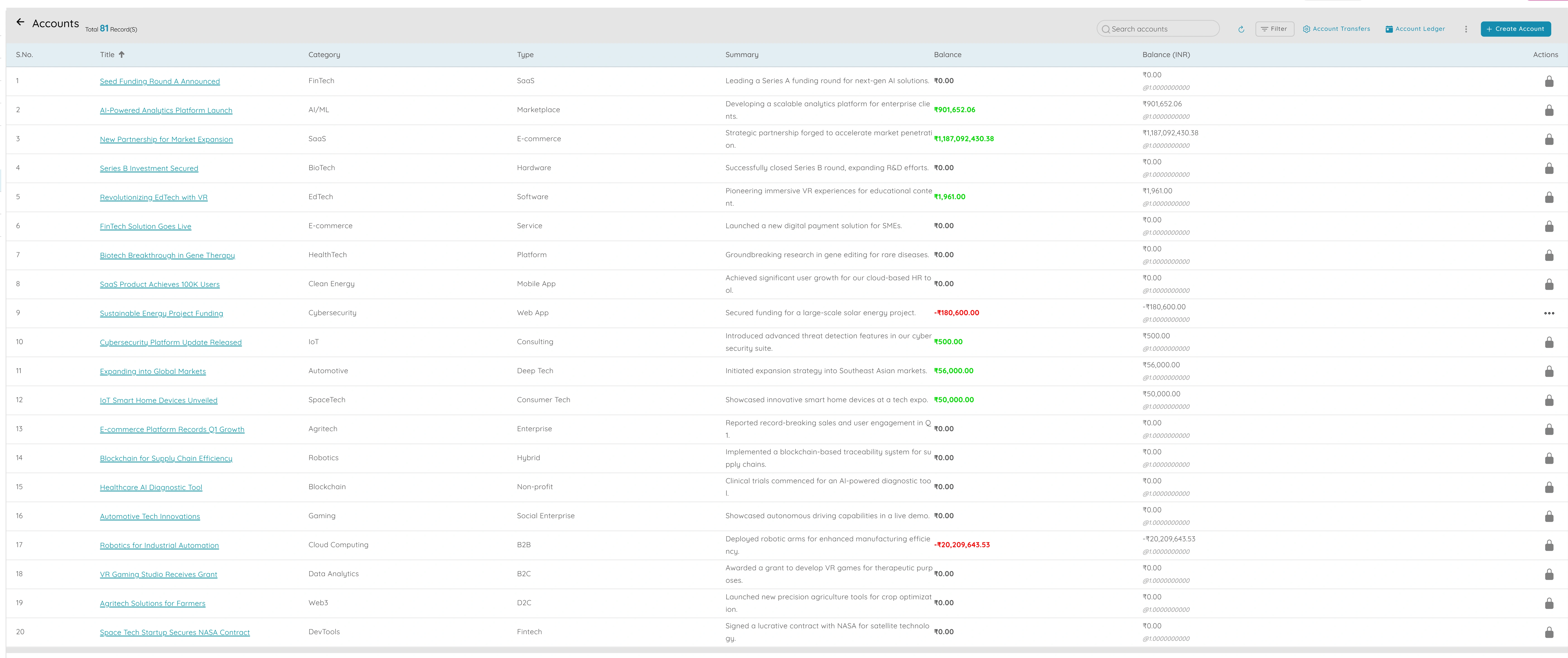 - Simple: one or a few accounts at the beginning; add more as you open new accounts or entities.