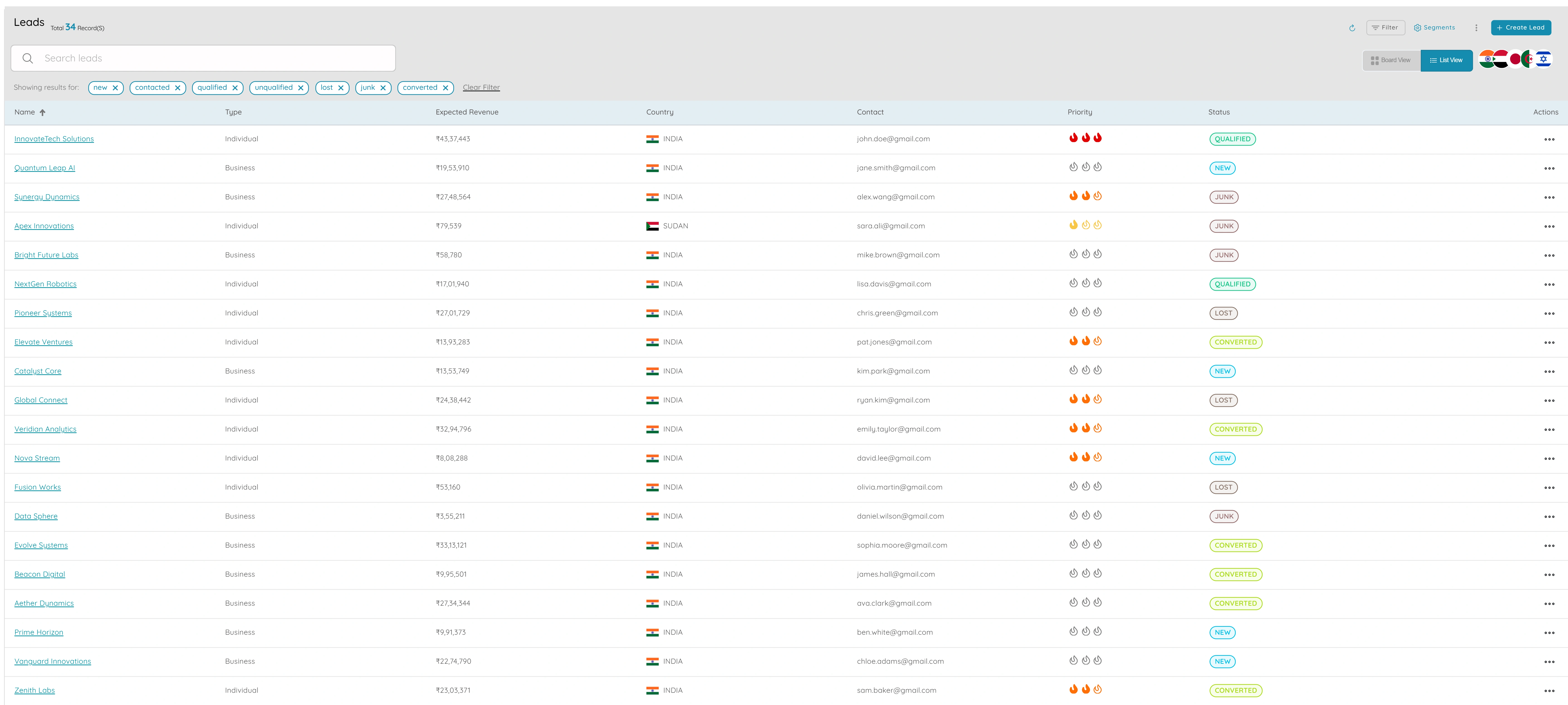 - Visible pipeline: see every lead and deal in one place so you know what's in the funnel and what's about to close—no spreadsheets or forgotten follow-ups.